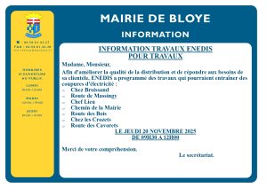 Coupure d’électricité – Jeudi 20 novembre 2025 de 9h30 à 12h00
