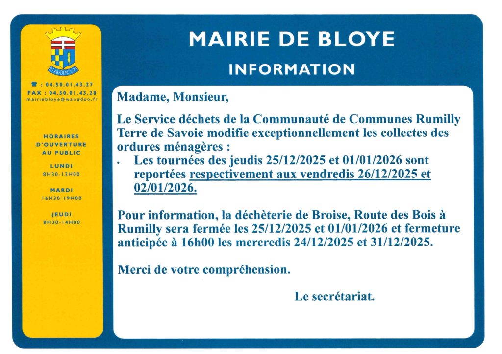 Fêtes de fin d’année 2025 : déchèterie fermée et collectes modifiées